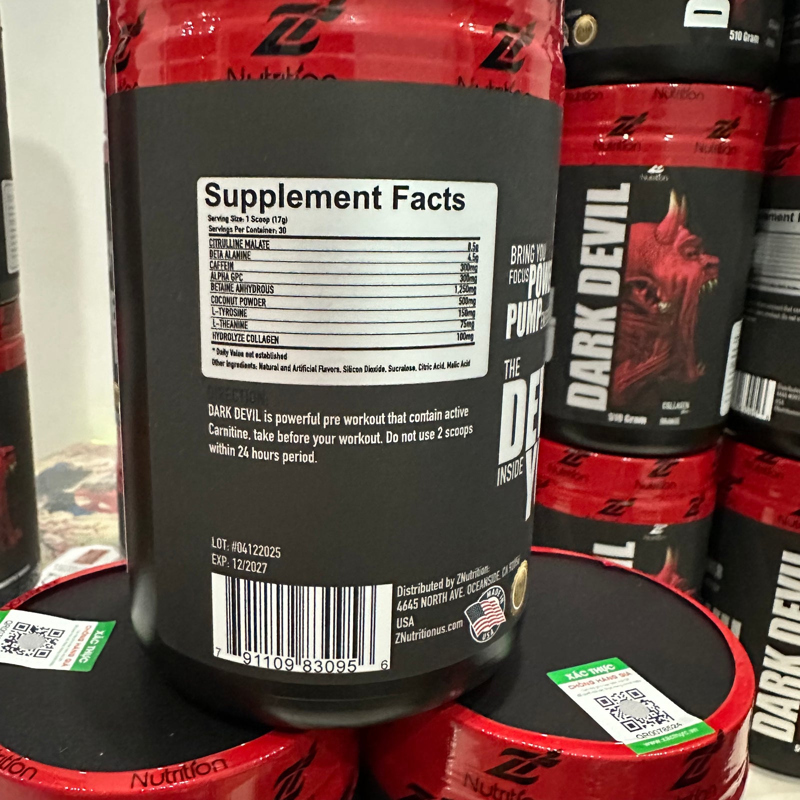 Dark Devil là sản phẩm chủ lực đến từ Z Nutrition, một thương hiệu của Mỹ chuyên cung cấp các thực phẩm bổ sung cho vận động viên, người thường xuyên tập gym, chơi thể thao. Tuy còn khá non trẻ trên thị trường (thành lập vào năm 2017) nhưng các sản phẩm của Z Nutrition đã nhanh chóng chiếm được được nhiều cảm tình của khách hàng nhờ chất lượng rất tốt mà giá thành khá phải chăng.