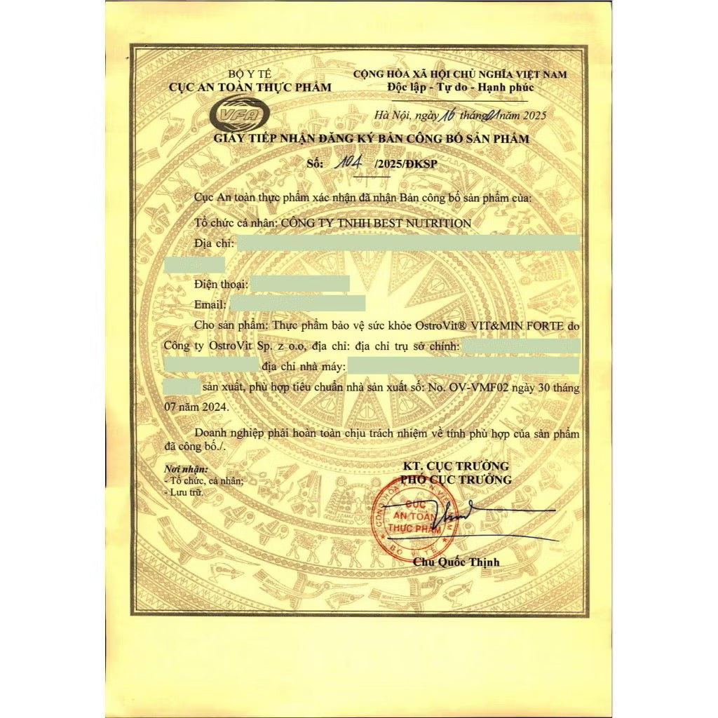OstroVit Vit&Min Forte là 1 loại thực phẩm bổ sung vitamin và khoáng chất. Sản phẩm cung cấp đến hơn 20 loại vitamin và khoáng chất thiết yếu cho cơ thể. OstroVit Vit&Min Forte có dạng viên dễ uống, được thiết kế dành cho những người quan tâm đến việc bổ sung các thành phần dinh dưỡng có giá trị cao vào chế độ ăn uống hàng ngày. Sản phẩm được nghiên cứu và sản xuất bởi hãng OstroVit - thương hiệu thực phẩm bổ sung hàng đầu tại Ba Lan.